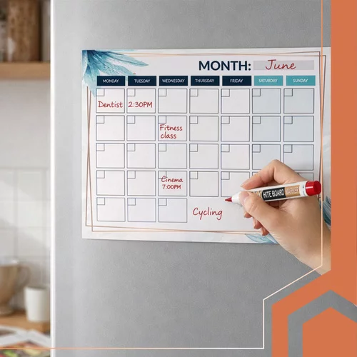 A világos tervezés napi feladatok és a családi programok egyszerű a nagy mágneses tervező köszönhetően, amely praktikus törölhető felülettel rendelkezik. Lehetővé teszi a gyors jegyzetelést, bevásárlólisták készítését és fontos határidők rögzítését felesleges káosz nélkül. A hűtőre helyezve mindig szem előtt van, így segít javítani a időgazdálkodást és csökkenteni a napi stresszt. A rugalmas elrendezés és a megfelelő tér teljes kontrollt ad a tervezés felett.