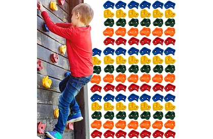 Hozza a gyerekeknek szórakozást és mozgást egyszerre! Ez a mászókövek készlete biztonságos, színes és tartós fogantyúkat kínál, amelyeket a gyerekek otthon vagy a játszótéren kipróbálhatnak. Különböző formák és kontrasztos színek biztosítják a szilárd fogást, és fejlesztik a motoros koordinációt, a logikai gondolkodást és a fizikai állóképességet. A falra vagy játékstruktúrára való könnyű telepítés tökéletes kiegészítővé teszi a készletet minden gyerekjátszótérhez vagy otthoni mászófalhoz.