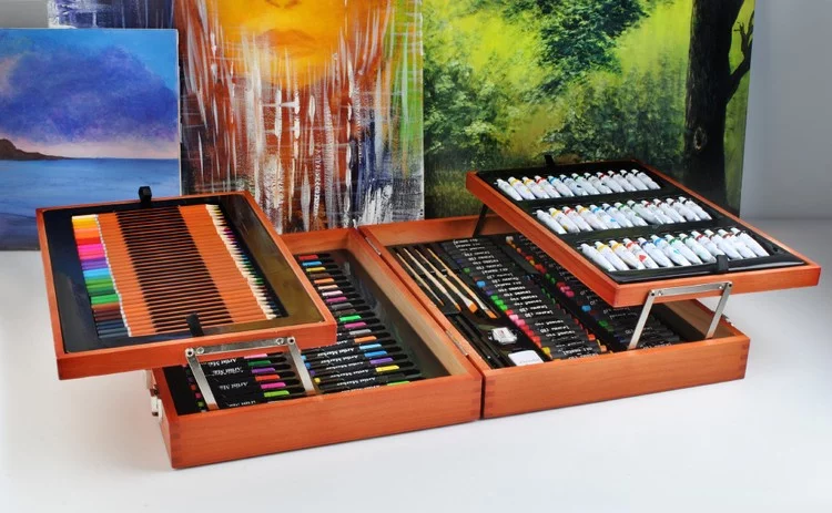 Fedezze fel a kreativitás és a művészet világát egy olyan művészeti készlettel, amely 177 elemet tartalmaz festéshez és rajzoláshoz. A fából készült bőrönd erős csatokkal mindent egyben tart, így a készlet nem sérül meg szállítás közben, és ideális otthoni és utazási használatra. A készlet fiatalabb és idősebb gyermekek számára is alkalmas, valamint felnőtteknek, akik szeretnék fejleszteni tehetségüket és kreativitásukat. Az elegáns fából készült tok biztosítja, hogy minden elemnek meglegyen a helye, és könnyű áttekintést és gyors hozzáférést biztosít a színekhez, színes ceruzákhoz vagy ecsetekhez.
