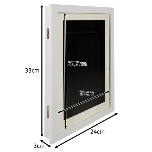 Elegáns nyitható keret lehetővé teszi, hogy áttekinthetően kiállítsuk és hosszú távon megőrizzük gyermekrajzokat, iskolai munkákat és kreatív alkotásokat. Az okos nyitási mechanizmusnak köszönhetően a képek gyorsan cserélhetők anélkül, hogy a keretet le kellene venni a falról, így fokozatosan személyes galériát hozhatunk létre a kis művész számára. A nagy kapacitás helyet takarít meg, és egyben védi a rajzokat a sérülésektől.