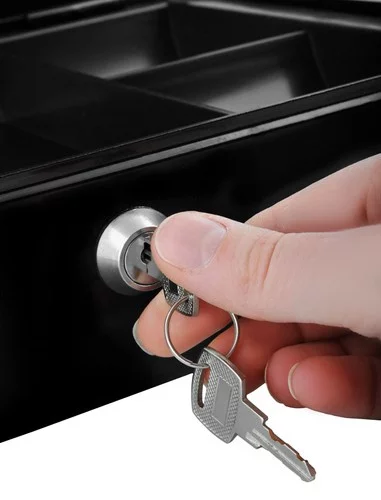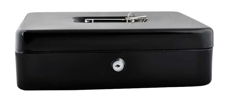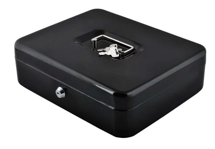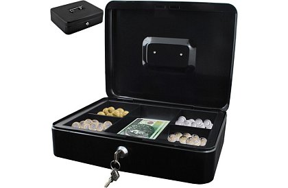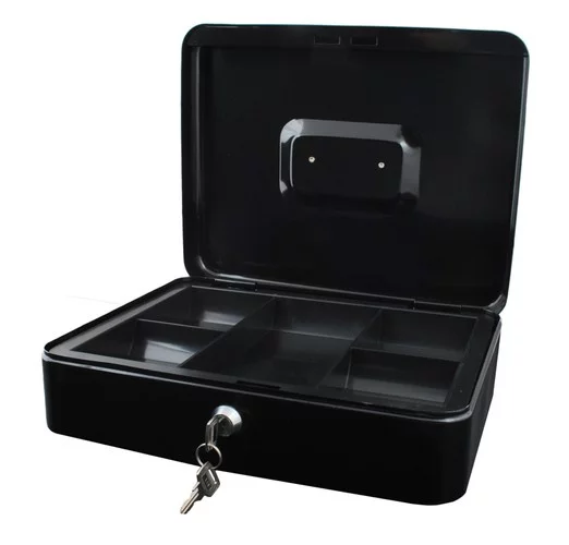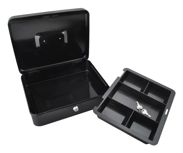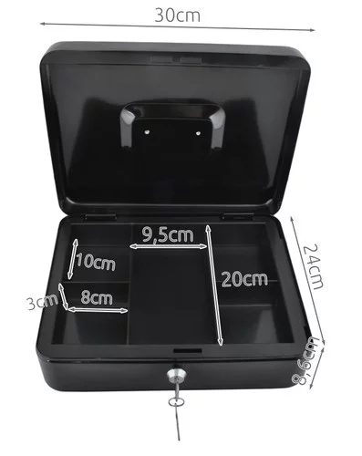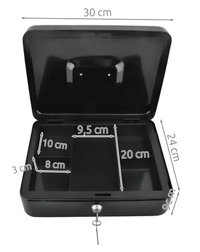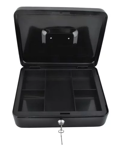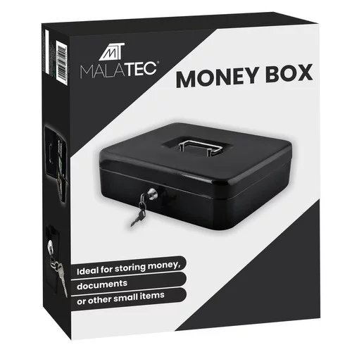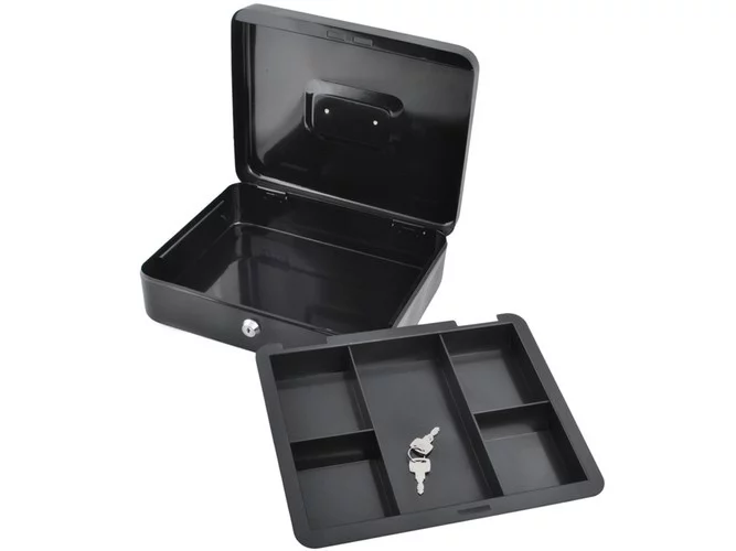 A nagy fém pénztárca praktikus és biztonságos megoldás a készpénz, dokumentumok, értékpapírok és apró értékek tárolására. A szilárd acél szerkezet és a megbízható szabadalom zár megvédi a tartalmát a jogosulatlan hozzáféréstől. Ideális otthonra, irodára, üzlethelyiségre és pénzszállításra.