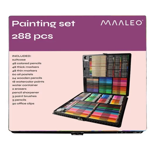 • Nagy készlet – tartalmaz 288 művészeti eszközt rajzoláshoz és festéshez