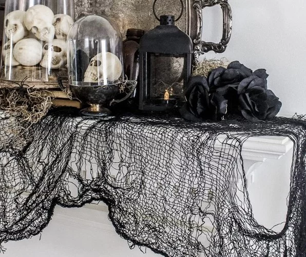 A pavučina hűen utánozza a valódi pavučinák megjelenését pincékből, padlásokról vagy elhagyatott helyekről. A különlegesen kialakított nyílások még félelmetesebb hatást és mélységet adnak a dekorációnak.