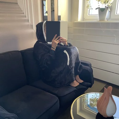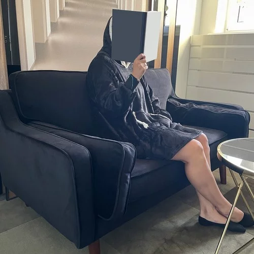 • 2 az 1-ben – pulóver és takaró egyben, ideális otthoni pihenéshez