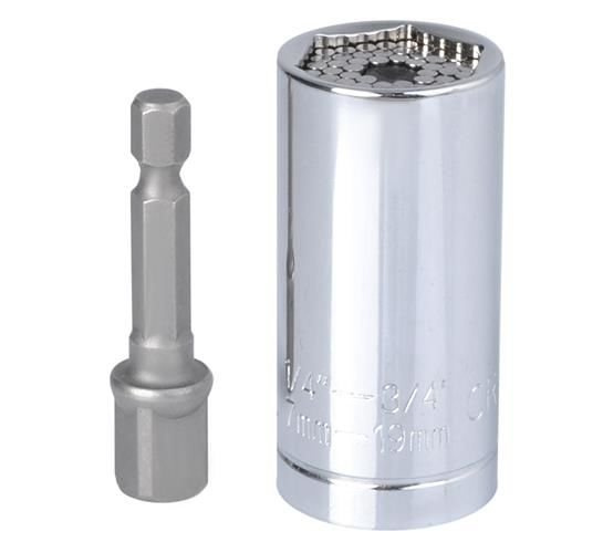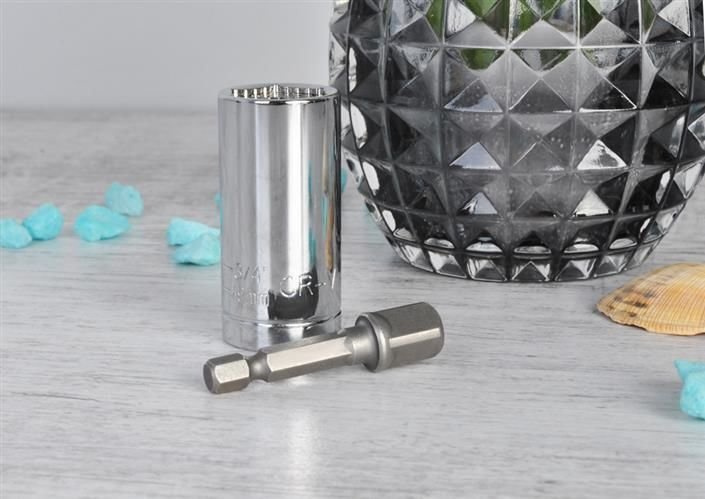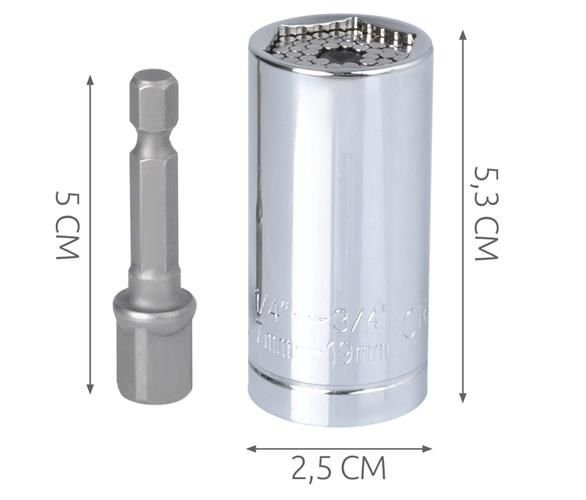 Ez a kiegészítő univerzális eszköz, amely hatszögletű csavarokhoz és anyákhoz alkalmas. A speciális fémrudaknak köszönhetően alkalmazkodik a csavar formájához, ami lehetővé teszi a megmunkált vagy sérült csavarok és anyák kioldását. A készlet tartalmaz egy kiegészítőt a kulcs rögzítésére csavarhúzóra vagy fúróra, ami növeli a rugalmasságát és a kényelmét a munka során. Tartós acélból készült a hosszú élettartam érdekében.