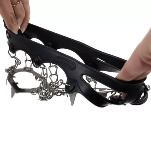 Rugalmas cipővédők 12 acél tüskével biztonságos és stabil lépést biztosítanak még nehéz körülmények között is, mint a hó, jég vagy sár. A rugalmas TPE anyag lehetővé teszi a 40–44-es méretű cipők könnyű alkalmazkodását, miközben a megerősített sarokpárna és a rozsdamentes láncok stabilitást és védelmet nyújtanak a cipőknek. A további tépőzáras pántok megakadályozzák a grippek csúszását, és a praktikus tok lehetővé teszi az egyszerű tárolást és szállítást.