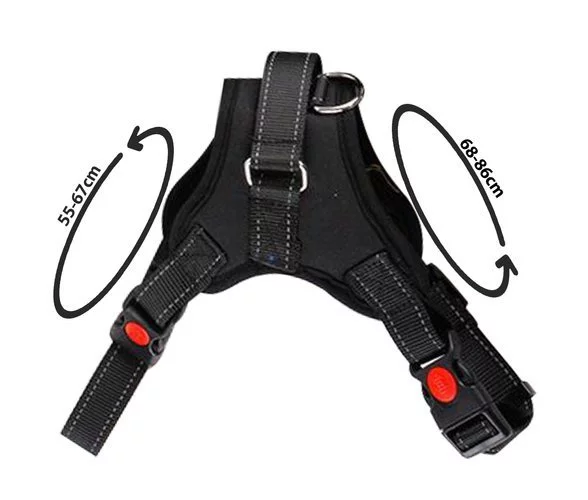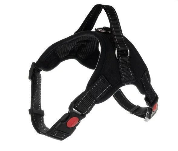 A nyomásmentes hám ideális kiegészítő a kényelmes és biztonságos sétákhoz a kedvencével. Nem szorítja a mellkast vagy a torkot, így a kutya könnyedén és kellemesen érzi magát. A hám extra fogantyúval és pórázkarabinerrel van felszerelve, ami még nagyobb irányítást és kényelmet biztosít a sétáltatás során. A fényvisszaverő elemek növelik a biztonságot az esti séták során.