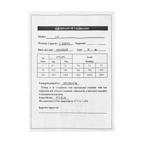 • Minden kulcs egyedi kalibrálási tanúsítvánnyal és sorozatszámmal rendelkezik