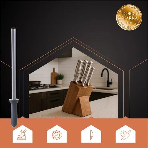 Biztosítja, hogy a kés éles legyen, mint új, közvetlenül a gyárból, a gyémántfelület révén, amely lehetővé teszi a gyors, egyenletes és hatékony élezést a penge sérülése nélkül. Ergonomikus markolat és tartós acélrúd biztosítja a kényelmes és biztonságos munkát, ideális professzionális és otthoni konyhák számára.