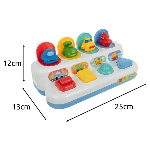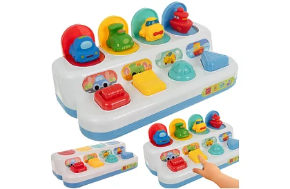 Az interaktív oktatási játék segíti a gyermek fejlődését játékos formában. A gombok, karok vagy kapcsolók megnyomásával színes járművek jelennek meg, ami segít fejleszteni a kéz-szem koordinációt, finommotorikát és logikai gondolkodást. Kompakt méretének köszönhetően ideális otthoni és utazási játékra, és egyúttal szórakoztató módon tanítja meg a gyermeknek az ok-okozati összefüggéseket.