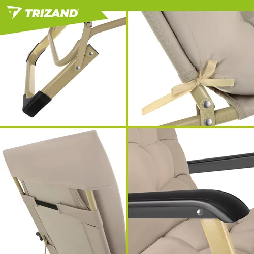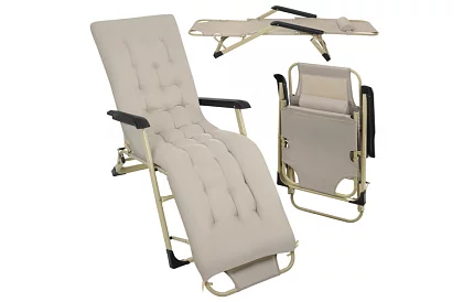 Kényelmes összecsukható kertipohár 3 az 1-ben ideális helyet biztosít a pihenéshez a kertben, teraszon, erkélyen vagy a strandon. A állítható háttámla és lábtartó lehetővé teszi, hogy a pohár könnyen alkalmazkodjon üléshez, pihenéshez vagy teljes fekvéshez. Erős párna 1,2 kg töltettel és fejtámla maximális kényelmet biztosít olvasás, napozás és pihenés közben. Az ellenálló oxfordi szövet 600D tartós, könnyen tisztítható és jól ellenáll a mindennapi használatnak. Összecsukható szerkezet lehetővé teszi az egyszerű szállítást és tárolást, így a poharat könnyen magával viheti kirándulásra, vízhez, vagy tárolhatja a garázsban vagy az autó csomagtartójában.
