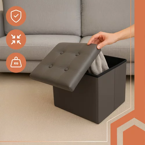 Stílusos és praktikus kiegészítő minden belső térhez, amely a kényelmes ülést okos tárolóhellyel ötvözi. A vízálló anyagból készült kárpitozott puff puha ülést és 39 literes tágas tárolóhelyet kínál – ideális takarók, játékok vagy apróságok számára. A hajtogatható szerkezet lehetővé teszi a gyors összecsukást és kinyitást néhány másodperc alatt, így helyet takarít meg, miközben rendet tart. Tökéletesen illeszkedik a nappaliba, hálószobába és előszobába.