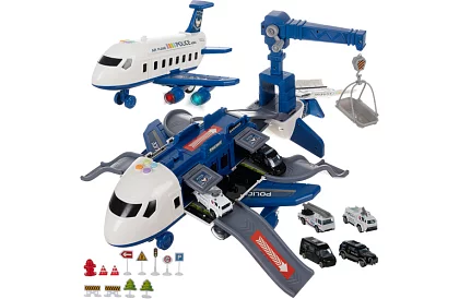 Rendőrségi repülőgép mozgó részeket kínál, mint például nyitható oldalak, rámpa, autókat indító berendezés és forgatható daru, amelyek a játékhoz realizmust adnak és színesítik minden akciójelenetet. Interaktív készlet támogatja a kreatív és aktív játékot és fejleszti a motoros készségeket és a kéz-szem koordinációt.