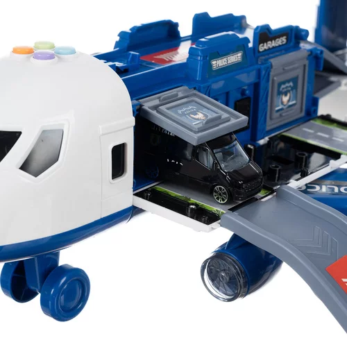 • Rendőrségi repülőgép mozgó részekkel – nyitható oldalak, rámpa, indító és forgatható daru