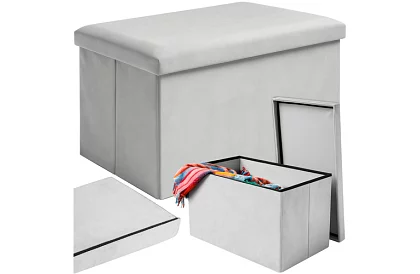 A tároló puff praktikus és stílusos kiegészítő minden belső térhez. Kárpitozott vízálló bársonnyal és MDF megerősítéssel puha ülést és tágas 54 literes tárolóhelyet biztosít, ideális játékok, takarók vagy apróságok számára. A hajtható dizájn, a masszív szerkezet és a maximális teherbírás 80 kg kombinálja a funkcionalitást a elegáns megjelenéssel, alkalmas nappaliba, hálószobába vagy folyosóra.