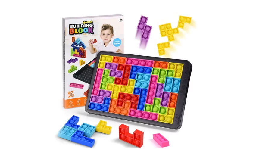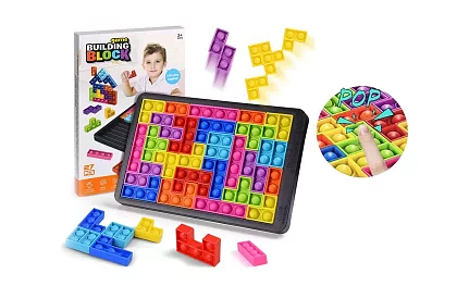 A buborékos játék fantasztikus szórakozást nyújt hosszú órákon át. Szórakoztató érzékszervi játék, amelyet többféleképpen lehet játszani. A részecskéken buborékok találhatók, amelyek nyomásra halk pattanást adnak ki. Jó móka, úgy, hogy az egyes darabokat egy mintába rendezzük úgy, hogy összefüggő egészet alkossanak.