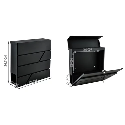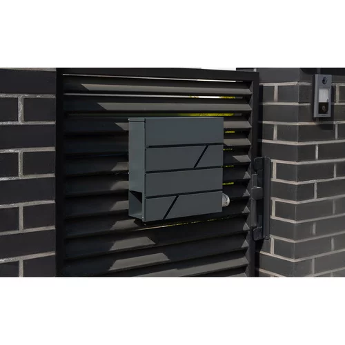 Az elegáns antracit színű postaláda ötvözi a tartósságot és a praktikusságot. A horganyzott acél miatt ellenáll a korróziónak, és sok szezont kibír. A fedett bedobó lehetővé teszi a biztonságos A4-es levél tárolását, míg az alsó cső elfér a feltekert újságoknak és szórólapoknak. A csomag tartalmaz kulcsokat és szerelési tartozékokat, így a telepítés gyors és egyszerű.