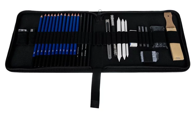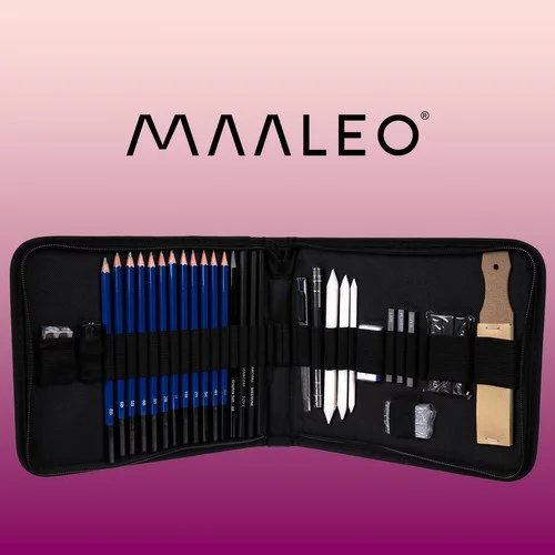 Teljes művészeti készlet, amely rajzolásra, vázlatkészítésre és részletes munkára készült. Széles választékot kínál ceruzákból, szénből és kiegészítőkből, amelyeket a kezdők és a haladó művészek egyaránt értékelni fognak. A praktikus tok révén minden áttekinthetően rendezett és mindig kéznél van otthon, az iskolában és utazás közben.