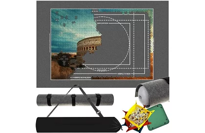 A puha puzzle alátét lehetővé teszi a kényelmes puzzle összeállítást és rendszerezést anélkül, hogy a darabok elvesznének. A tekercses cső és a száraz cipzárak segítségével a kész puzzle könnyen tárolható és szállítható. A négy darab darabkategorizáló tasakkal és praktikus tároló tok segítségével a puzzle összeállítása kényelmes, átlátható és biztonságos.