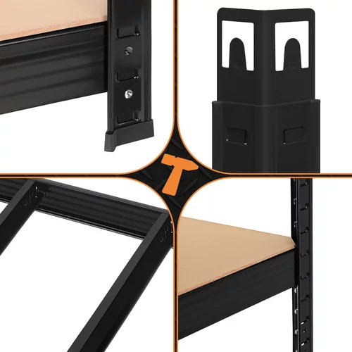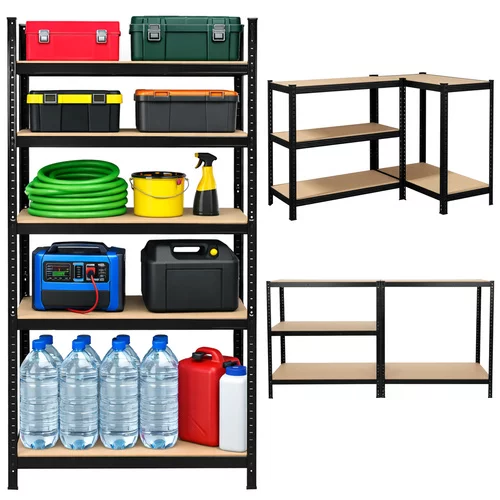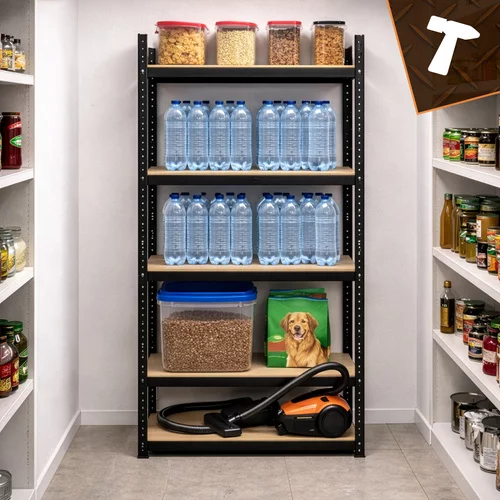 A robusztus raktári polc megbízható és áttekinthető tárolóhelyet biztosít nehéz és könnyű tárgyak számára. A szilárd porfestett acél szerkezet magas korrózió- és mechanikai sérülésekkel szembeni ellenállást biztosít. A stabil MDF polcok megerősítésekkel lehetővé teszik a szerszámok, gumik, dobozok vagy anyagkészletek biztonságos tárolását. A csavar nélküli szerelési rendszernek köszönhetően a polc könnyen összeszerelhető szerszám használata nélkül, és a állítható polcmagasság lehetővé teszi a tárolt tárgyak különböző típusokhoz való alkalmazkodását. Ideális megoldás garázsokhoz, pincékhez, műhelyekhez, raktárakhoz vagy kereskedelmi helyiségekhez.