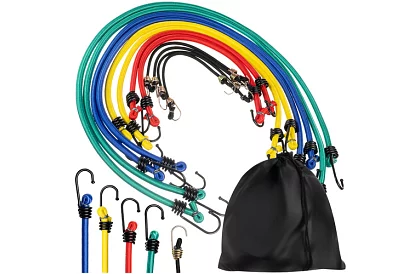 Praktikus készlet rögzítő gumikkal fém kampókkal lehetővé teszi a gyors és biztonságos rakomány biztosítást otthon és útközben. Különböző hosszúságú gumikkal rugalmasságot biztosít, a magas elaszticitás garantálja a többszöri használatot a tulajdonságok elvesztése nélkül, és a kompakt tok mindent rendezetten tart.