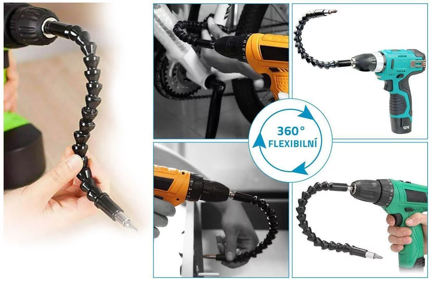 A fúrótartozék nagyszerű segítő, nem csak a hivatásos kézművesek számára alkalmas, de minden otthoni ezermester értékelni fogja. A rögzítés flexibilis, rugalmas és hajlékony, így a nehezen hozzáférhető helyeken is kényelmesen segít a csavarok meghúzása és felengedése során. A nehezen elérhető helyeknek, például sarkoknak, fülkéknek és szűk tereknek már nincs esélye!