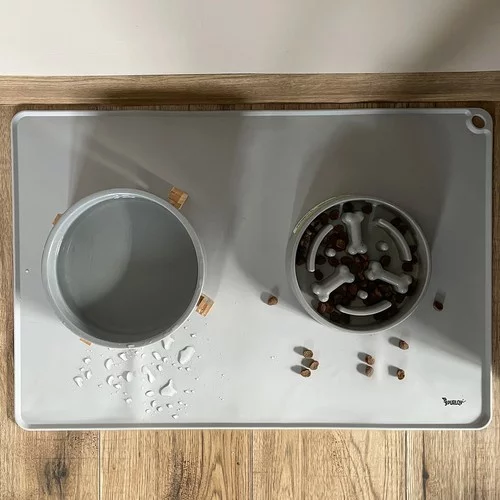 Lehetővé teszi a padló védelmét és egyben a tálak stabil helyben tartását étkezés közben. Csúszásmentes szilikon megakadályozza a tálak elmozdulását, megemelt szélek felfogják a kiömlött folyadékokat és az ételmaradékokat, és nagy felület biztosít helyet két tál számára. Könnyű karbantartás és tartós anyag garantálja a hosszú távú használatot és a higiéniát.