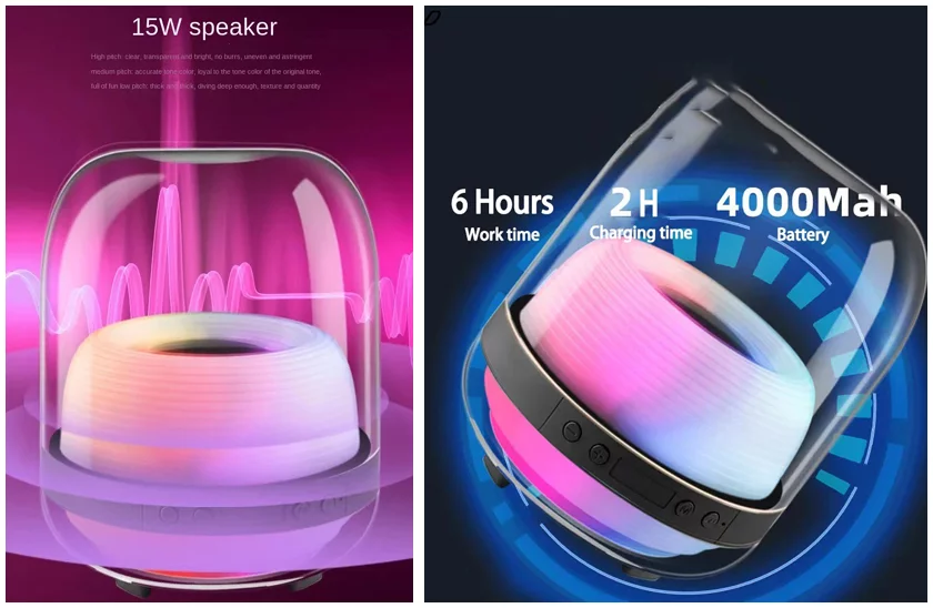 Stílusos Bluetooth hangszóró szivárványos háttérvilágítással, idő kijelzővel, USB-C bemenettel és…