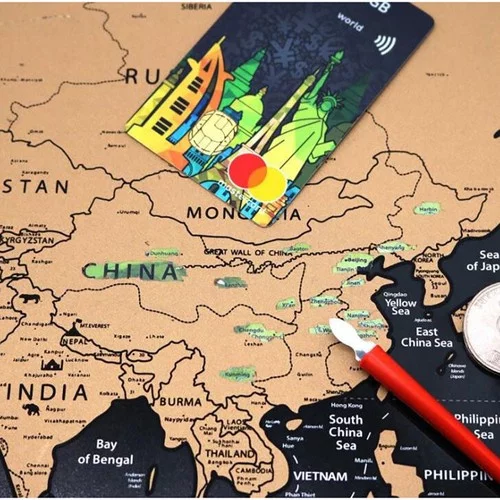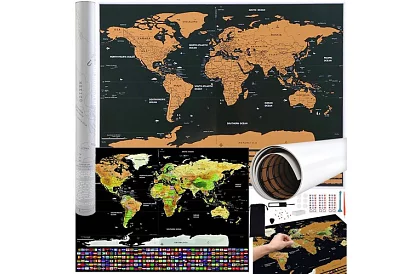Fedezze fel a világot otthona kényelméből egy dekoratív kaparós térképpel, amely lehetővé teszi, hogy a látogatott országokat a felső réteg letörlésével jelölje meg. Alatta színes zászlók és részletes földrajzi információk jelennek meg, így a térkép nemcsak praktikus eszköz az utazások nyomon követésére, hanem gyönyörű dekoráció is a belső térben.