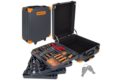 A komplex 1000 darabos szerszámkészlet széles spektrumú eszközöket kínál otthoni, műhelyi és autós munkákhoz. Alumínium kerekes táska teleszkópos fogantyúval biztosítja a könnyű mobilitást és a rendezett tárolást. Négy eltávolítható szervező lehetővé teszi a gyors hozzáférést az eszközökhöz és biztosítja a tökéletes rendet. A készlet tartalmaz kulcsokat, dugókulcsokat, biteket, csavarhúzókat, fogókat és szerelési tartozékokat, amelyek lehetővé teszik szinte bármilyen javítás vagy karbantartás elvégzését. Ideális választás mindenkinek, aki professzionális és praktikus megoldást keres.