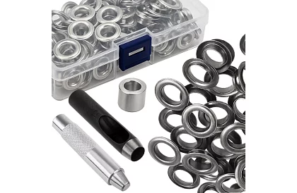 • Teljes készlet – szemek, alátétek, lyukasztó és szegecselő egy csomagban