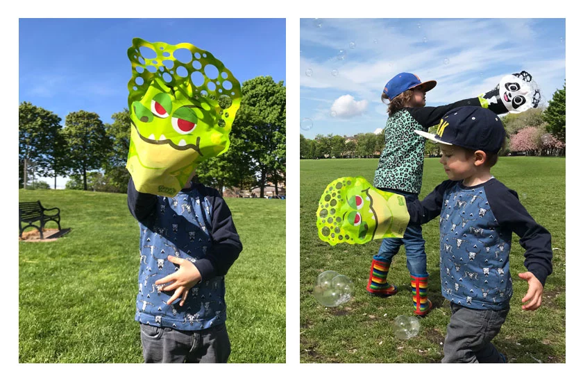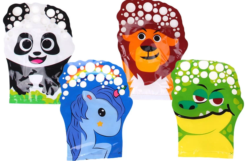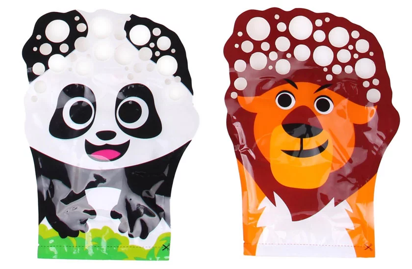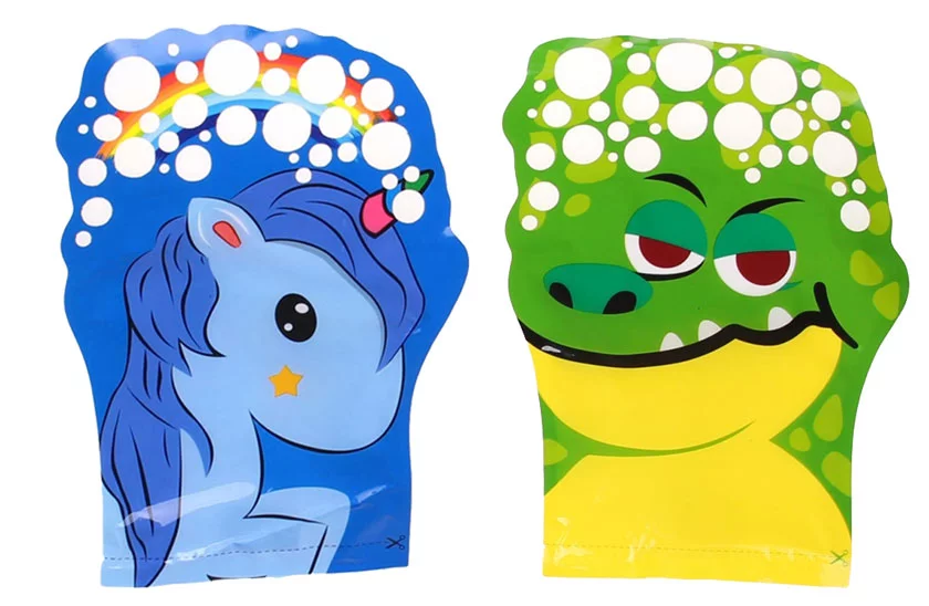 Szórakoztató kesztyű állati motívummal és buborékfújóval, ideális szabadtéri játék gyerekeknek. Buborékok, csupán csak buborékok. Vedd ki a buborékfújót, húzd fel az állatkesztyűt, és kezdődhet a buborékos móka. Integessen a kezével, forgassa, ugorjon, illetve fordítsa a kesztyűt a széllel szemben. Kicsit őrült, de határozottan szórakoztató.