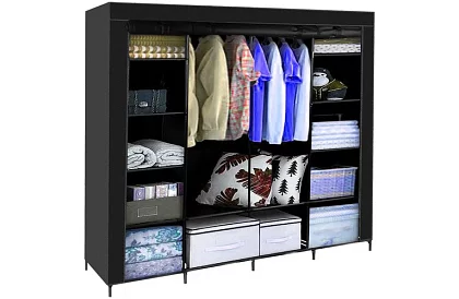 A praktikus XXL méretű textil szekrény bőséges tárolóhelyet kínál ruhák, textíliák és kiegészítők számára anélkül, hogy klasszikus bútorokat kellene vásárolni. A könnyű szerkezet, egyszerű összeszerelés és mobil kivitel miatt lakásba, házba, nyaralóba is alkalmas, valamint ideiglenes megoldásként költözéskor. A cipzáras záródás védi a tartalmat a portól, nedvességtől és szagoktól, és segít a rend és átláthatóság fenntartásában.