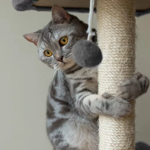 A macskakaparó ideális helyet kínál a kaparásra, játékra és pihenésre, védi a bútorokat és a lakás berendezéseit a sérülésektől. A különböző játékos elemek, könnyített platformok és biztonságos zugok révén támogatja macskája aktivitását és kondícióját. A macska szabadon mászhat, vadászhat a rögzített játékokra, vagy pihenhet a puha szőrmén, ami csökkenti a stresszt és kielégíti természetes ösztöneit.