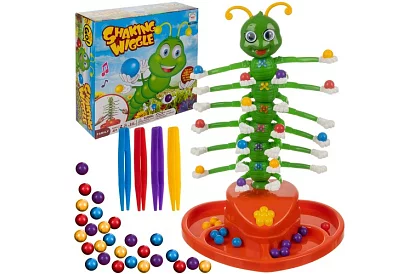 • Hogyan kell játszani a játékot – az a játékos nyer, aki először helyezi el a golyóit a hernyó lábaira csipesz segítségével