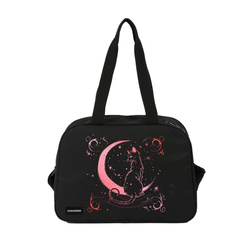 • Stílusos dizájn – fekete táska rózsaszín nyomattal
