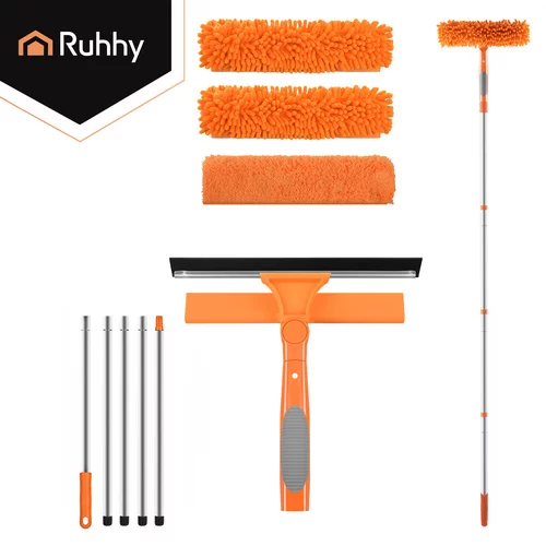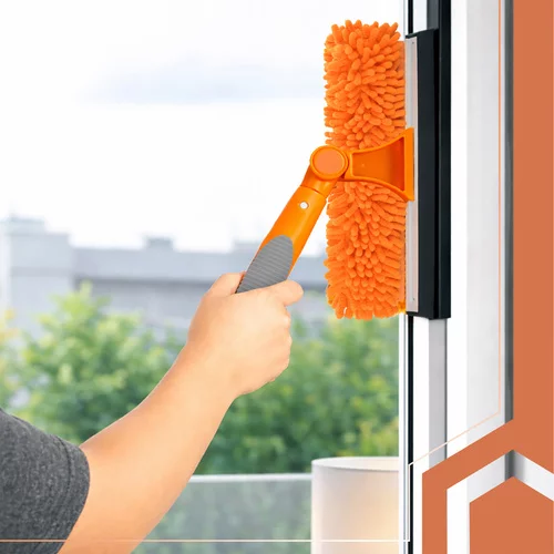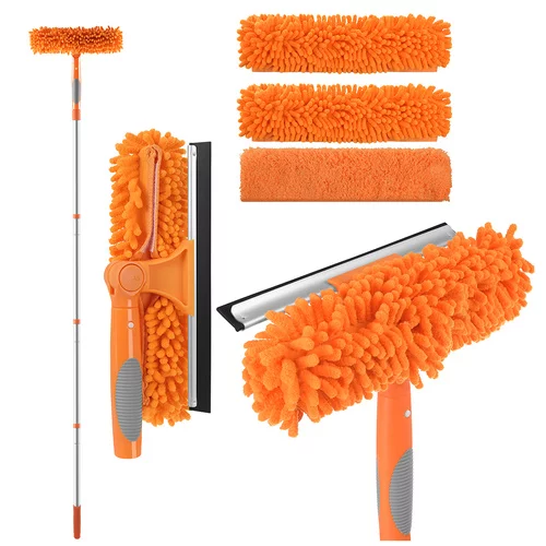 Az ablakmosás gyors, kényelmes és veszélyes egyensúlyozás nélkül is lehet. 3 az 1-ben teleszkópos ablakmosó hatékonyan tisztítja az ablakokat, tükröket és más sima felületeket 1,8 m-ig állítható rúd, forgatható fej és mikroszálas huzatok révén. Elérheti a nehezen hozzáférhető helyeket, és tiszta, csíkmentes eredményt érhet el.