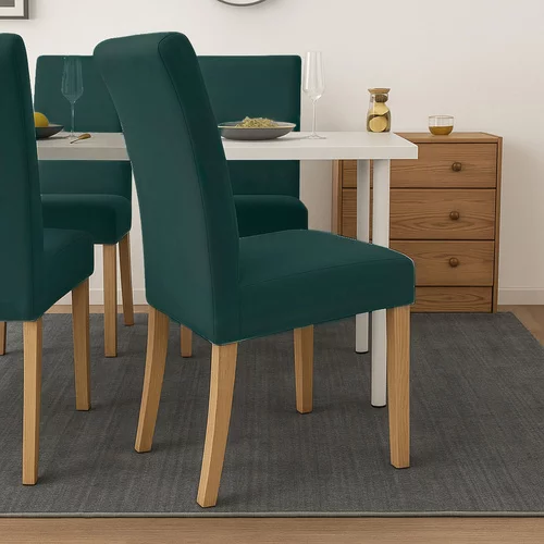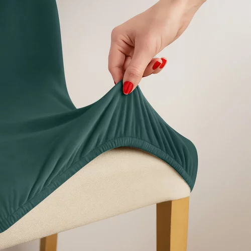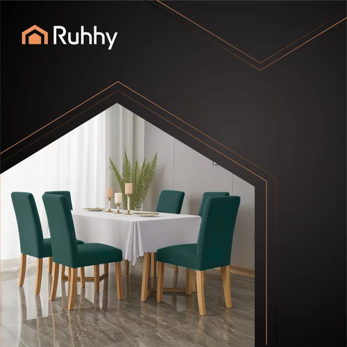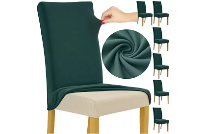 A RUHHY huzatok kombinálják a eleganciát, kényelmet és védelmet a székek számára. Puha poliészterből és rugalmas spandexből készülnek, minden székre illeszkednek és védik őket a szennyeződésektől és a sérülésektől. Palackzöld szín különböző belsőépítészeti stílusokhoz illik, és a univerzális méret 65 × 40 × 35 cm a legtöbb standard székre illeszkedik.