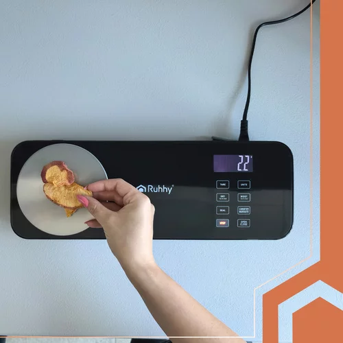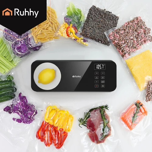 A vákuumos tasak és digitális mérleg maximális ellenőrzést biztosít az élelmiszerek tárolása és a porciók mérete felett. A hatékony dupla szivattyú 80 kPa gyors légelszívást biztosít, és többszörös frissességet garantál. A 0,1 g pontossággal végzett mérés segít csökkenteni a pazarlást és megkönnyíti az ételek elkészítését. Praktikus funkciók, mint a csúszó kés, LCD kijelző, több üzemmód és túlmelegedés elleni védelem biztosítják a kényelmes, biztonságos és hatékony használatot minden modern konyhában.
