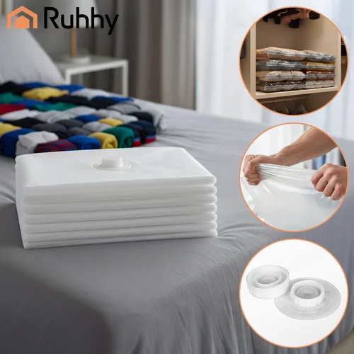 Praktikus vákuum tasak készlet, amellyel akár 80%-ot is megtakaríthat a szekrényben, bőröndben vagy költözéskor. Csak helyezze a ruhákat a tasakba, és szívja ki a levegőt egy szokásos porszívóval vagy a mellékelt szívóval. A dolgok frissek maradnak, védve a portól, nedvességtől és molyoktól, és a tasakokat többször is használhatja. Ezzel a készlettel a ruhák tárolása egyszerű és hatékony lesz.