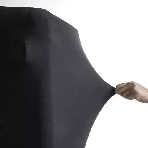 Rugalmas és tartós anyag poliészterből és spandexből tökéletesen alkalmazkodik a közepes bőröndök különböző formáihoz. Garantálja a hosszú élettartamot és a mechanikai sérülésekkel szembeni ellenállást.
