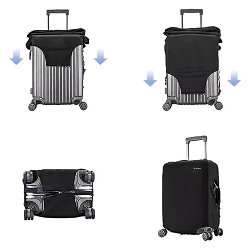 A huzat praktikus a könnyű felhelyezés és eltávolítás miatt. A speciális nyílások lehetővé teszik a kerekek, fogantyúk és teleszkópos fogantyú használatát a burkolat eltávolítása nélkül. A kiegészítő gumi heveder csattal jobb rögzítést biztosít, és megakadályozza a csúszást.