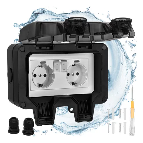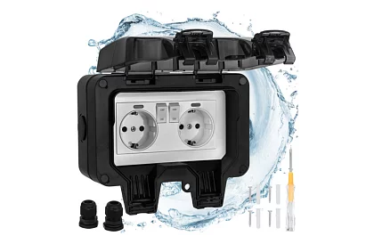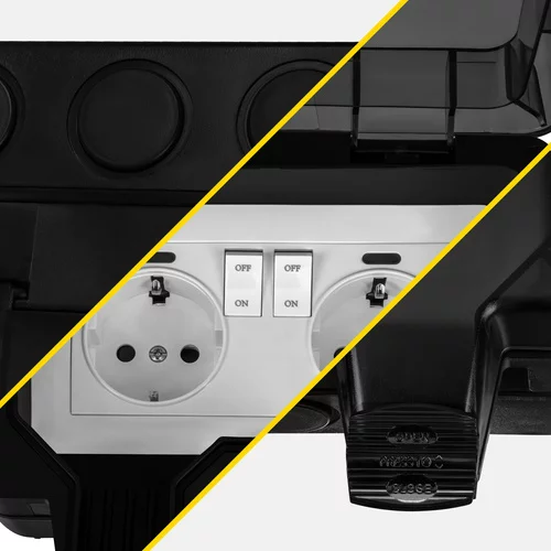 A dupla kültéri aljzat megbízható és biztonságos megoldás az elektromos készülékek táplálására kültéri környezetben és nedves helyeken. A magas IP66 védettségnek és tartós konstrukciónak köszönhetően használhatja a kertben, a garázsban, a műhelyben vagy a technikai helyiségben.