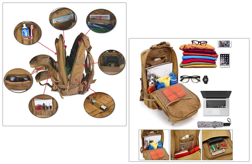 Praktikus túlélési hátizsák 28 literes űrtartalommal. A hátizsák kiváló minőségű, nagyon erős anyagokból készült, dupla varrással és vízálló. A hátizsák két főrekeszre és két kisebbre van osztva, pl. dokumentumokra, illetve kisebb tárgyakra. A dupla mély cipzároknak köszönhetően a hátizsákot, mint bőröndként is nyitható. A hátizsák ideális sportolás, túrázás során, valamint a mindennapi használatra is.