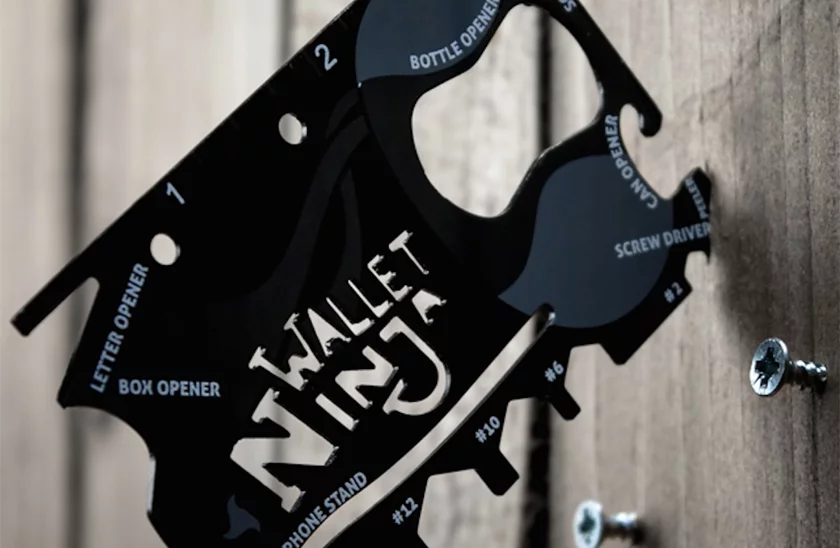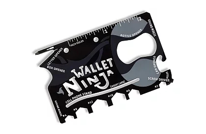 Sokoldalú, kis helyigényű eszköz a Wallet Ninja 18v1 - multifunkciós kártya. |