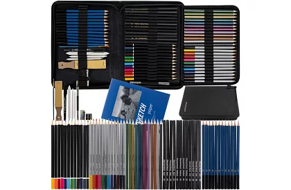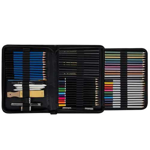 A komplex rajzoló készlet mindent kínál, amire szükség van vázlatkészítéshez, rajzoláshoz és árnyékoláshoz egy praktikus csomagban. A gazdag eszközválaszték lehetővé teszi részletes vázlatok, illusztrációk és művészi tanulmányok készítését. Elegáns textil tok átlátható elrendezéssel biztonságban tartja az összes eszközt a helyén, és megkönnyíti a szállítást. A különböző keménységű ceruzák, pasztellkréták és kiegészítők széles választéka maximális kreatív szabadságot biztosít a felhasználónak a munkavégzés során. Ideális megoldás kezdő rajzolók, diákok és haladó művészek számára, akik mindig kéznél akarják tudni az összes alapvető eszközt.
