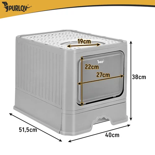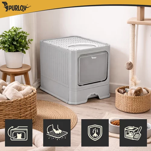 Adjon macskájának kényelmes és higiénikus helyet a mindennapi szükségleteihez. Zárt macska WC segít csökkenteni a szagok terjedését, bent tartja az alomot, és több magánéletet biztosít a kedvencének. A kihúzható fióknak köszönhetően a takarítás gyors és kényelmes, így a karbantartás csak minimális időt vesz igénybe. A modern kivitel ráadásul könnyen illeszkedik bármilyen belső térbe.