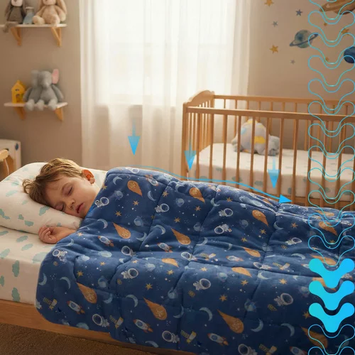 A szenzoros terápiás takaró nyugodtabb alvást, biztonságérzetet és mélyebb relaxációt biztosít a egyenletes stabilizáló nyomásnak köszönhetően, amely az egész testfelületen érezhető. Hétszintes konstrukciója üveggömbökkel finom, csendes és hipoallergén terhet képez, amely elősegíti az idegrendszer ellazulását, csökkenti a feszültséget és segít gyorsabban elaludni. A puha, kellemes anyagok és a precíz varrás biztosítja a kényelmet és a hosszú élettartamot a mindennapi használat során.