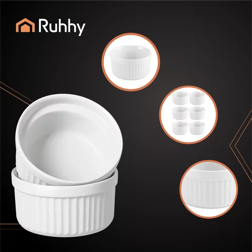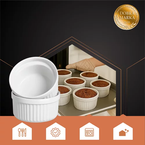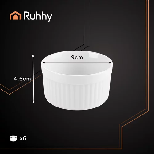 A 6 hőálló tál ideális ételek sütésére, desszertekre és előételekre. A praktikus méret és elegáns dizájn lehetővé teszi a tálalást közvetlenül az asztalon, míg a tartós kerámia elviseli a magas hőmérsékleteket a sütőben és a mikróban. A klasszikus fehér szín és a kompakt méretek pótolhatatlan kiegészítőt biztosítanak minden konyhához.